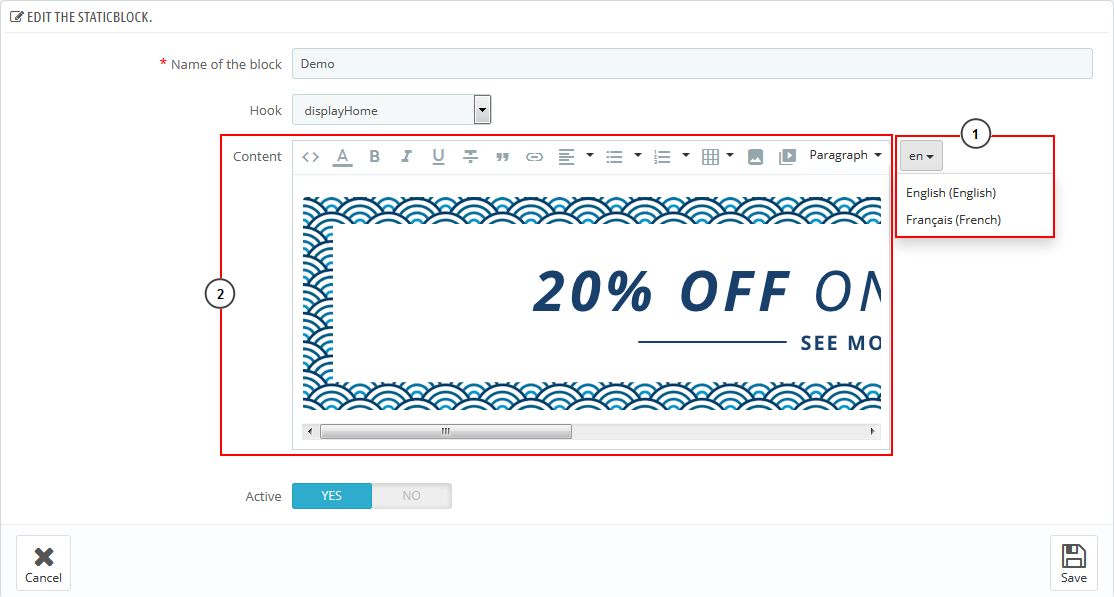 Create text, images, banners, videos, tables or any other type of static blocks.
