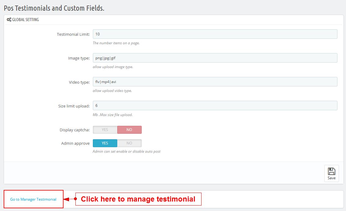 On Pos Testimonials, click "Configure" button.