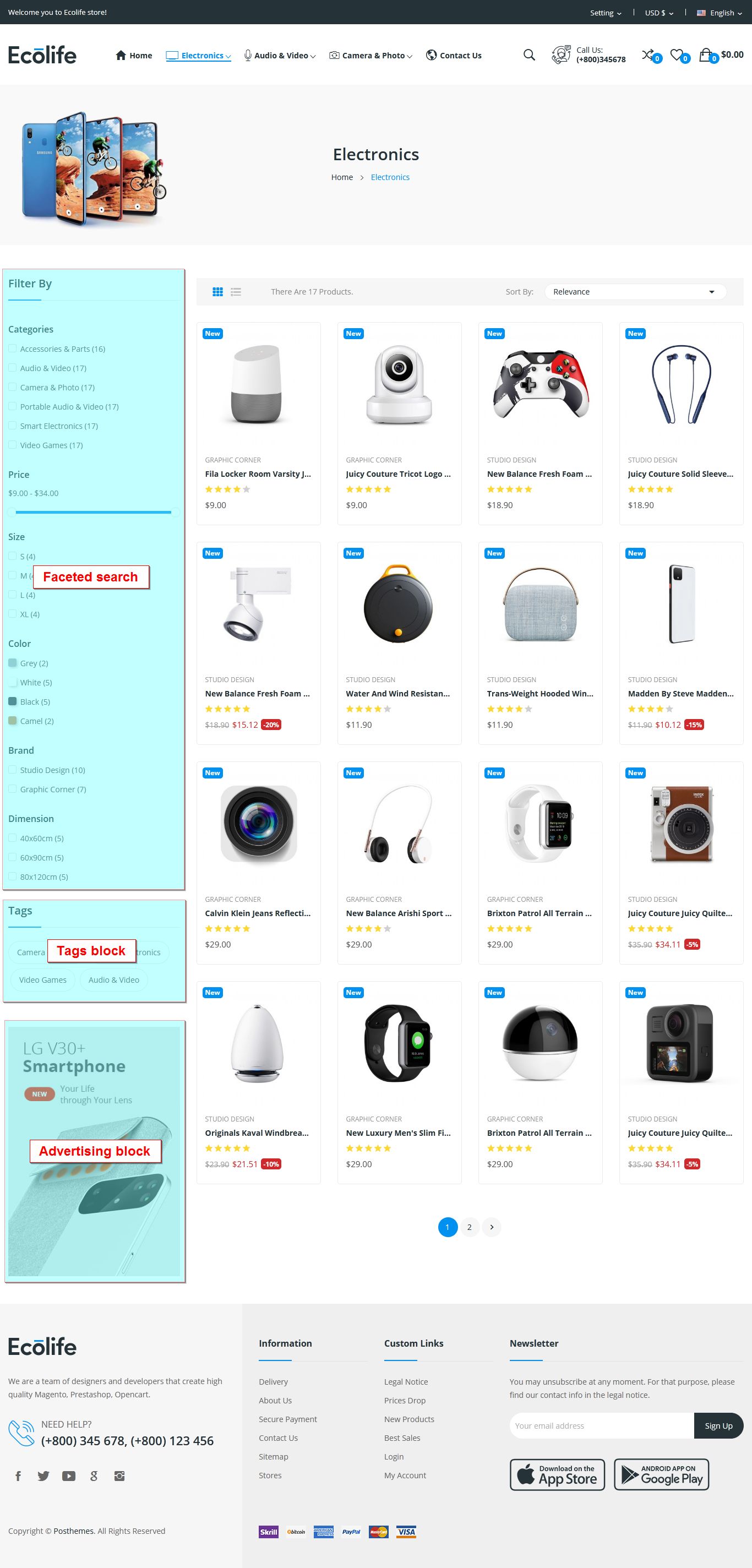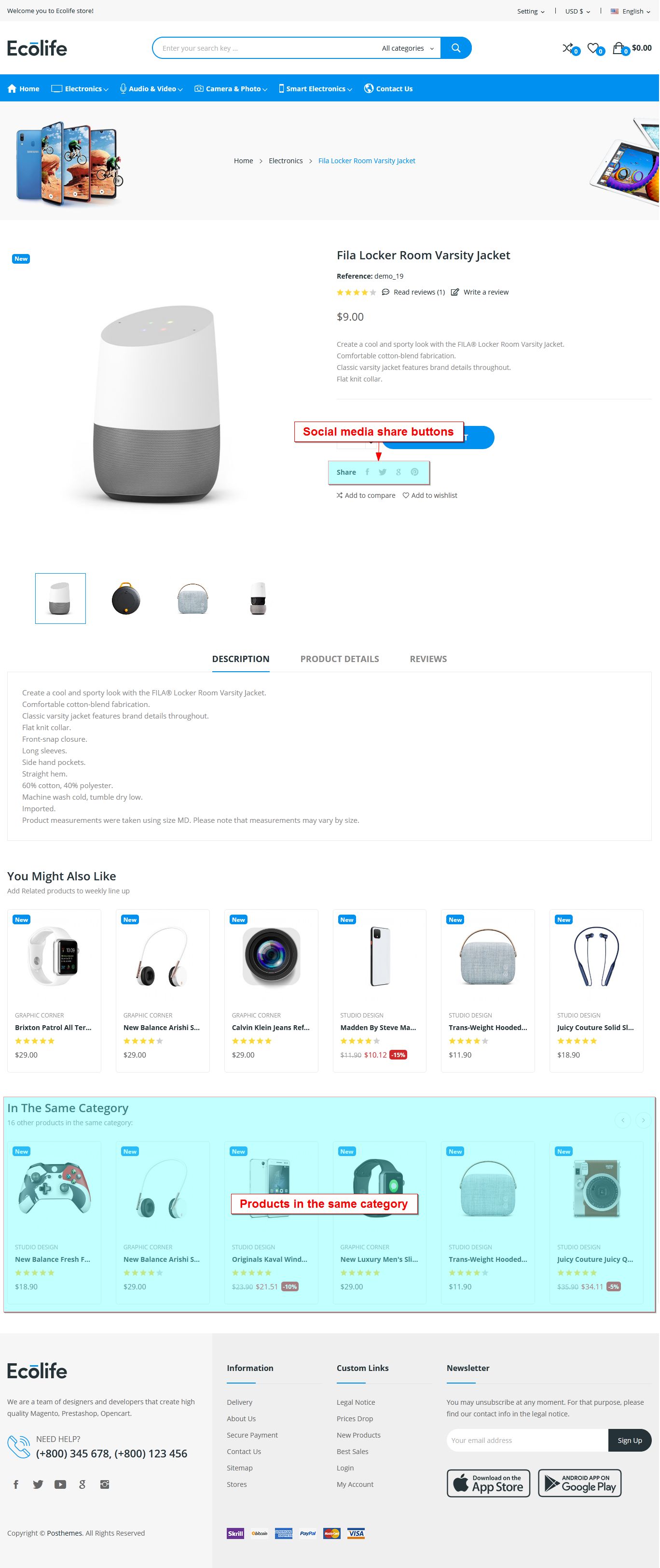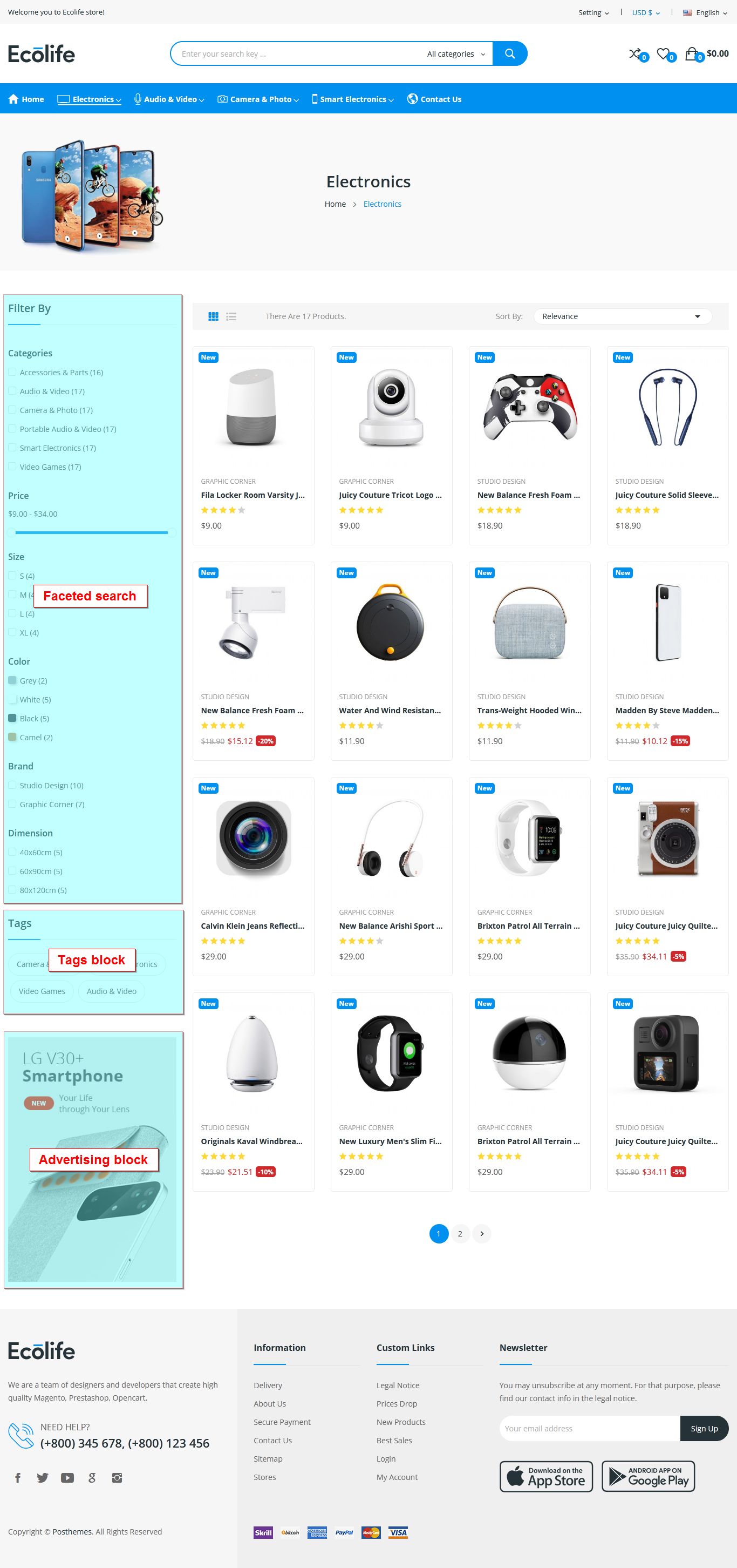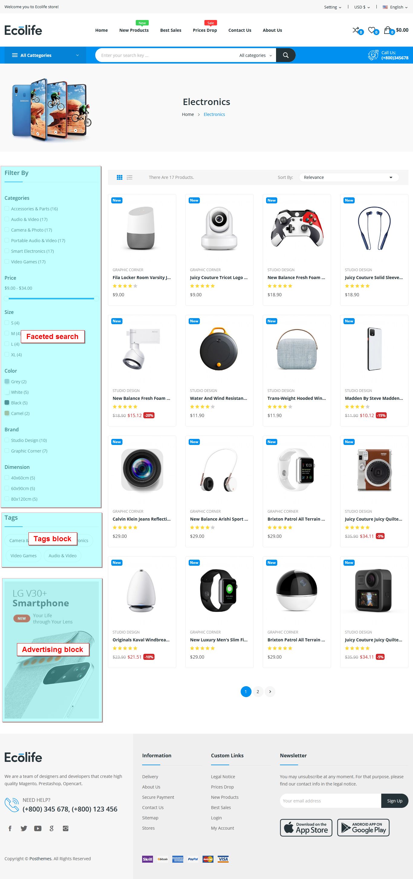 Pos Ecolife is a premium Responsive Prestashop theme with advanced admin modules, extremely customizable and fully responsive. It is suitable for every type of store. It is a standalone design package so you can easily create your own sub-themes.