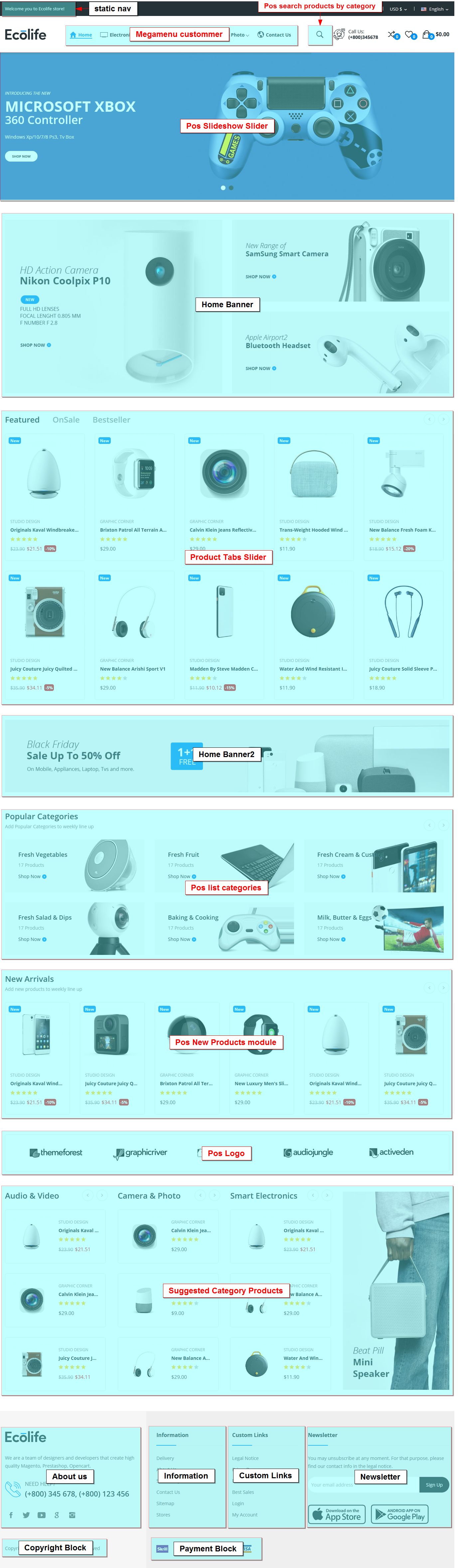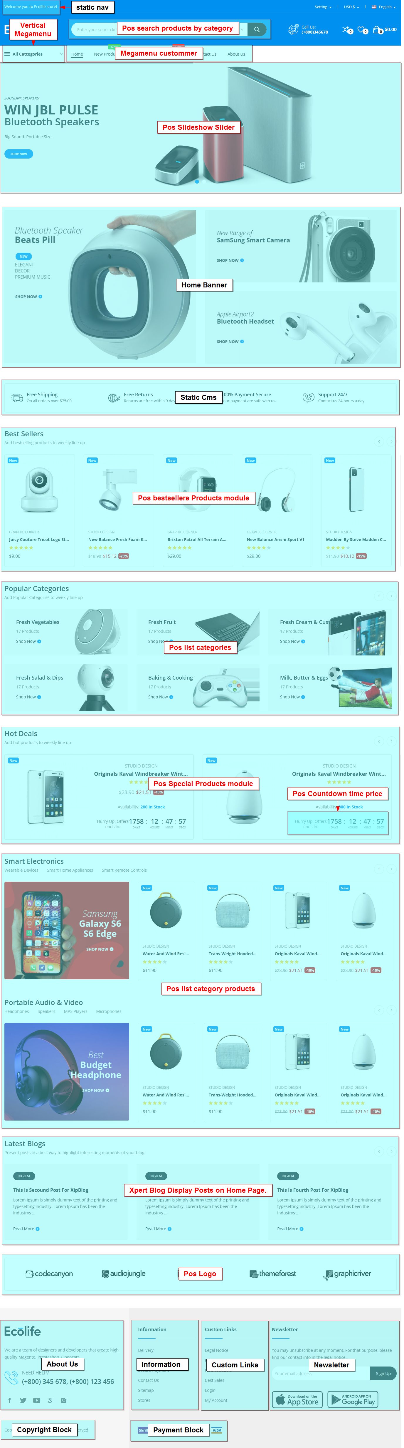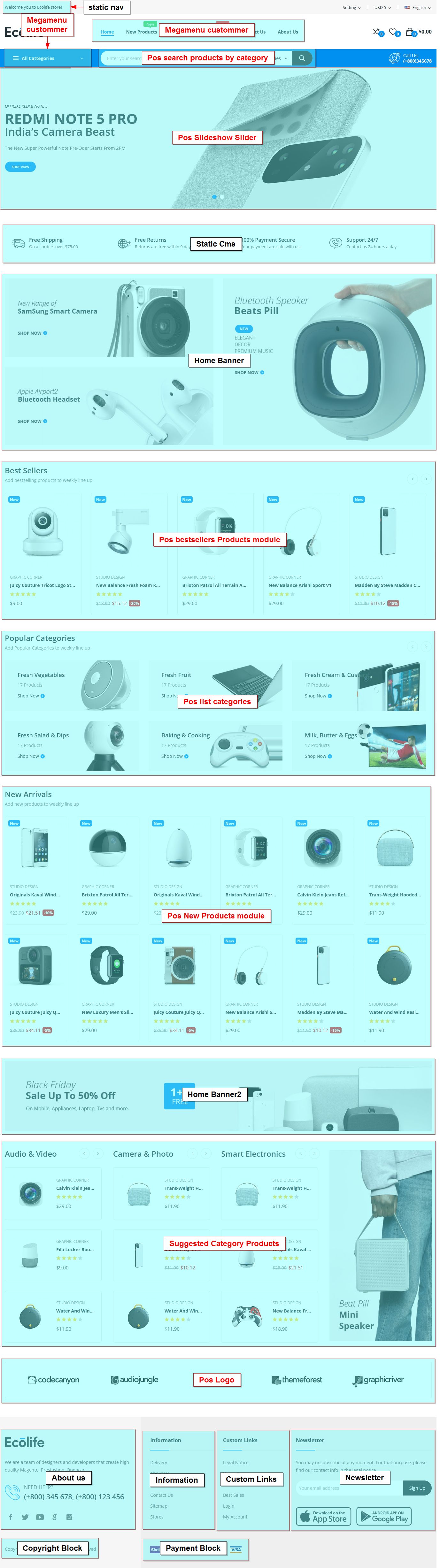 Below is a list of all modules in Ecolife theme. Click on the name of module you want to read configuration guide.